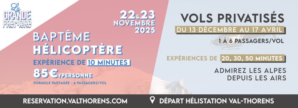 Les 22 et 23 novembre, à l’occasion de l’événement “La Grande Première”, venez vivre une expérience aérienne unique au départ de l’hélistation de Val Thorens !